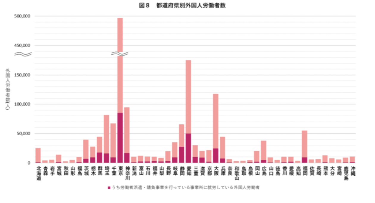 일본 거주 외국인의 거주지 통계는 위와 같습니다. 역시 도쿄가 압도적으로 1위였고 그 뒤를 이어 아아치현이 2위, 오사카가 3위, 가나가와가 4위, 사이타마가 5위였습니다. 역시 아무래도 일자리가 많은 수도권 도쿄, 카나가와, 사이타마에 모여있네요. 아이치현은 아직 가본 적도 없는 곳인데 이곳에도 상당히 많은 외국인들이 거주하고 있었네요.