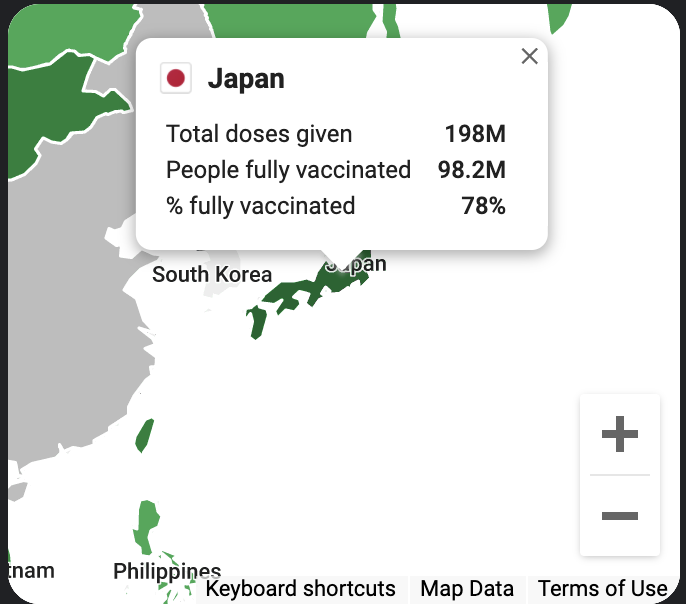 한편 코로나 대응에 중요한 무기였던 백신에 대해 기억을 더듬어 보면 일본은 비교적 빨리 백신 확보에 성공했던 것 같다. 그리고 접종면에서도 정부 주도로만 백신 접종을 진행하지 않고 민간 기업에게도 백신 접종을 가능하게 하여 대부분의 규모가 있는 기업들은 사내 접종을 시작하였다. 그리고 사내의 접종으로만 끝이 아니라 지역 사회의 주민들에 대해서도 사내의 접종이 가능하도록 허락하여 더 빠른 백신 접종이 가능하게 하였다고 생각한다. 본인의 경우에도 사내 접종으로 6월경에 1차를 접종하고 2차를 7월 경에 접종한 것으로 기억한다. 한국의 가족들과 친구들에 비해선 상당히 빨랐던 것으로 기억한다.