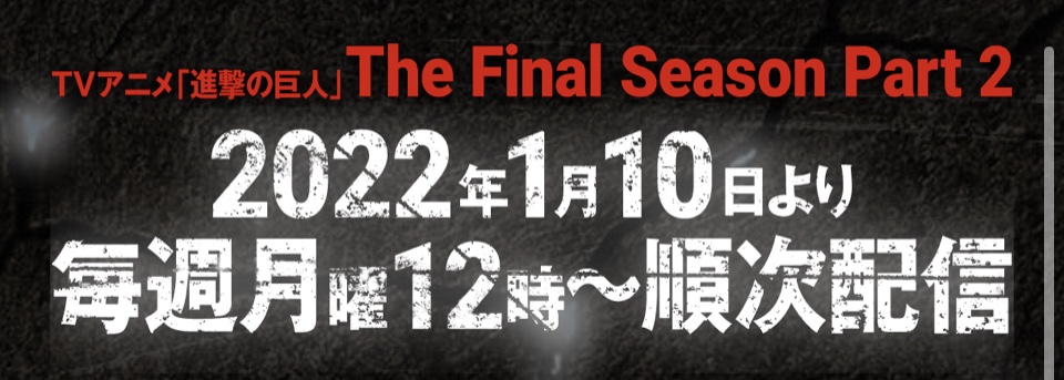 TVアニメ「進撃の巨人」The Final Season Part 2 NHK総合にて2022年1月9日(日)24時5分から放送開始!