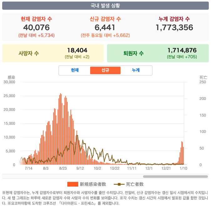1월 11일 일본 코로나 현황 - 폭발적으로 증가하는 코로나 환자와 늦어지는 백신 3차 접종