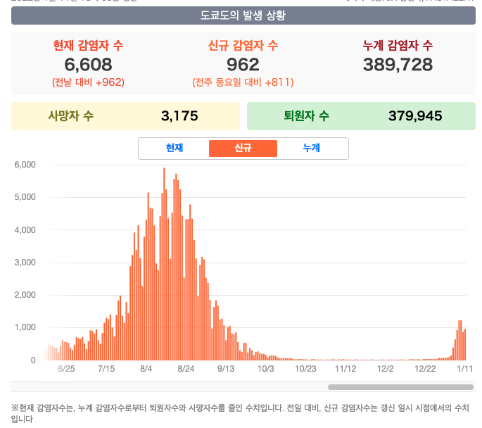 [일본 일상] 1월 6일 일본 코로나 현황 - 확진자 급증과 만연 방지 제한 조치