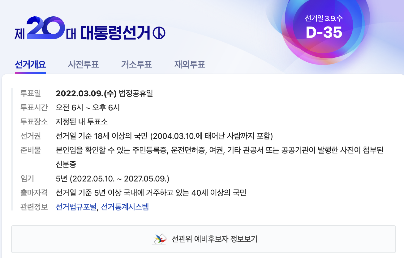 요즘 보니 한국에서는 대선 토론 방송도 많이 하는 것 같네요. 저도 일본에 있지만 오늘은 새벽까지 대선 토론을 보며 잠들었습니다. 아마 일본을 비롯하여 많은 외국에 계신 재외국민 분들도 많은 관심을 갖고 있고 많이들 투표하실 거라 생각합니다. 한국과 다르게 재외국민 투표는 조금 더 빨리 시작하는데요 어느덧 곧 재외국민 투표가 시작하는 2월이 되었습니다. 재외국민 투표를 사전 신청하신 분들이 투표하실 수 있습니다. 일본에 계신 재외국민 분들이 참고하실 수 있으면 좋겠습니다.