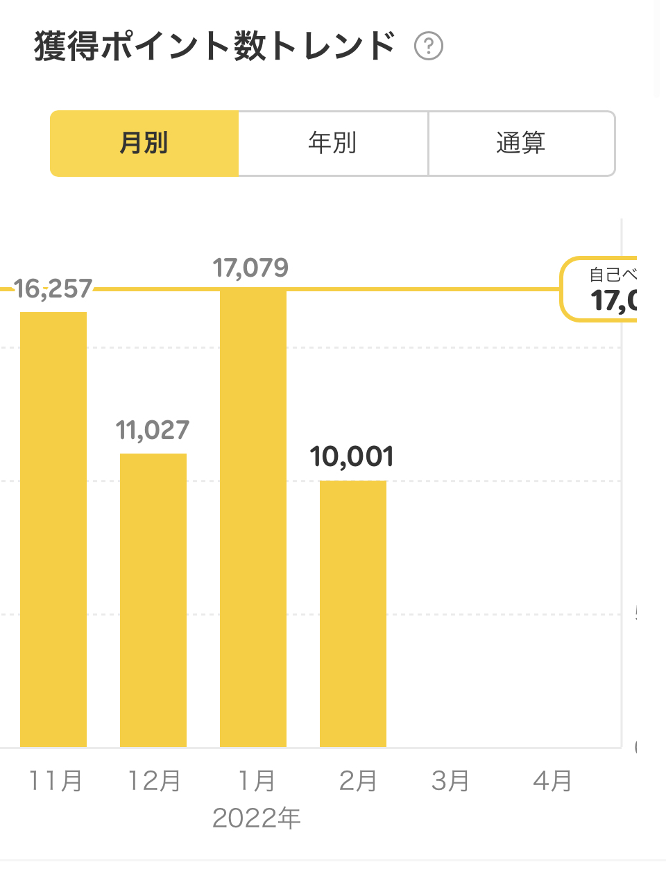 이렇게 대략 3년간 모은 라쿠텐 포인트 기록을 보면 벌써 16만엔 가까운 포인트가 모였습니다. 그리고 다음 달 획득 예정의 포인트로도 약 8,000포인트가 모여 있네요.