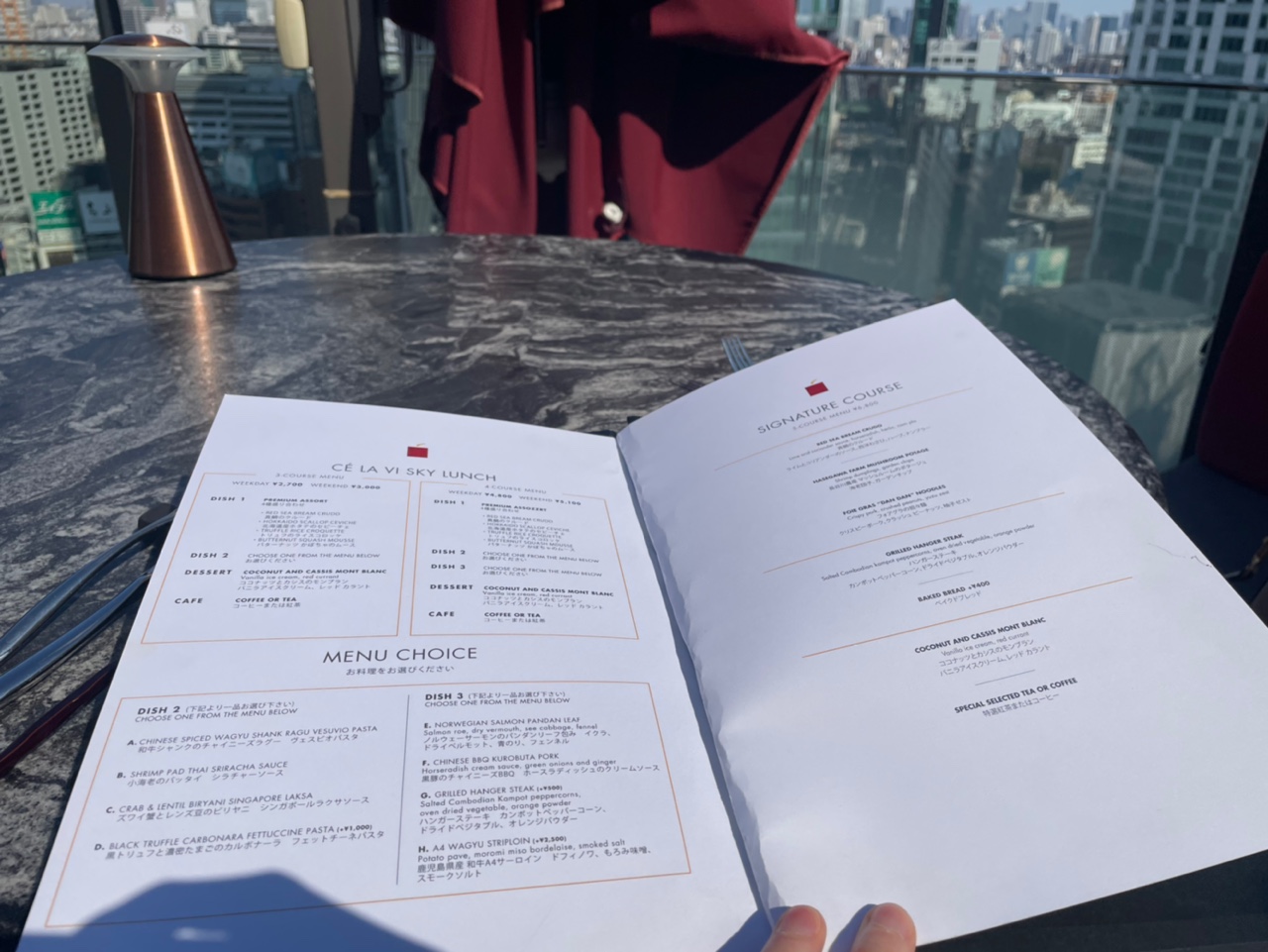 시부야 루프탑 바 도쿄 세라비 CE LA VI Tokyo 방문기, 메뉴