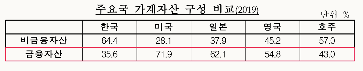 한국 일본 등 주요국 가계 자산 구성 비율 비교